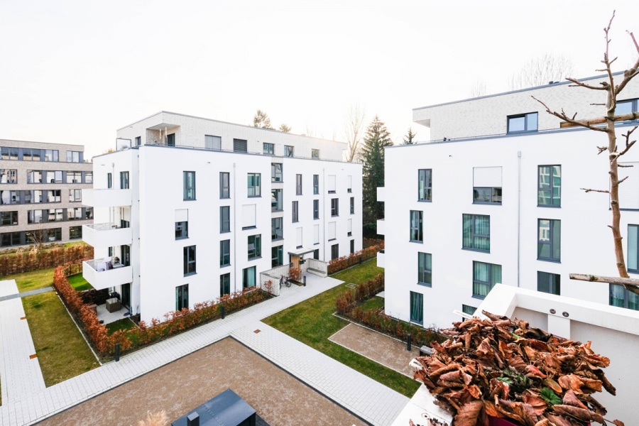Pandion Klosterhöfe, eine hochwertige Wohnanlage in Junkersdorf, fertiggestellt in 2018. Die hellen, luftigen Häuser sind energetisch auf dem neuesten Stand, haben Aufzüge und großzügige, exklusiv gestaltete Treppenhäuser, Tiefgaragen, natürlich auch Fahrradabstellräume. Die angebotene Wohnung verfügt auf 96,5 m² Wohnfläche über 3 Zimmer: ein großes Wohn-/Esszimmer mit offener Küche und Balkon, ein großes Schlafzimmer, ein kleineres Zimmer, ein großzügiges Wannen-/Duschbad, ein Gäste-WC mit Platz/Anschluß für Waschmaschine und Trockner, Flur, dazu ein Kellerraum und ein TG-Stellplatz.