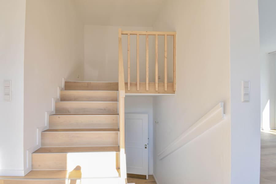Ein architektonisches Highlight der Wohnung ist die schöne Empore, die dem Raum eine besondere Großzügigkeit verleiht. Dieser Bereich eignet sich ideal als Homeoffice, Bibliothek oder ruhiger Rückzugsort und schafft eine charmante Verbindung aus Wohnkomfort und Individualität.