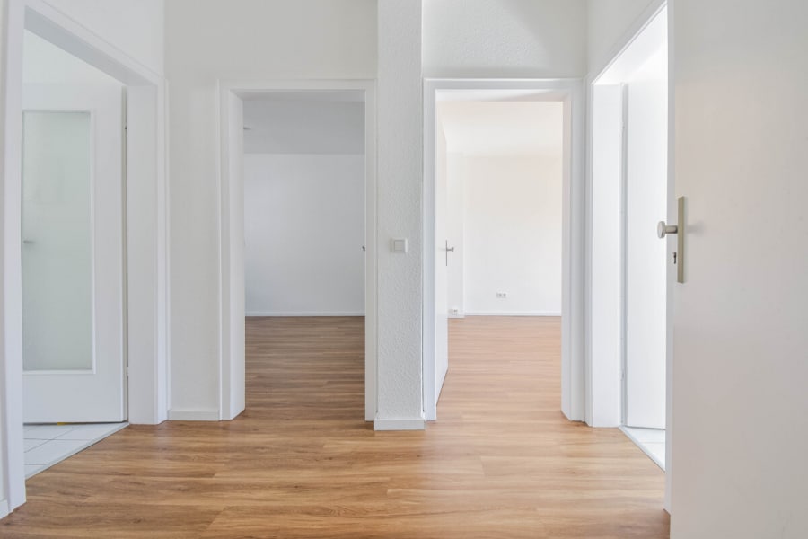 - Pflegeleichter Boden in Holzoptik in Wohn-, Schlafbereich und Diele