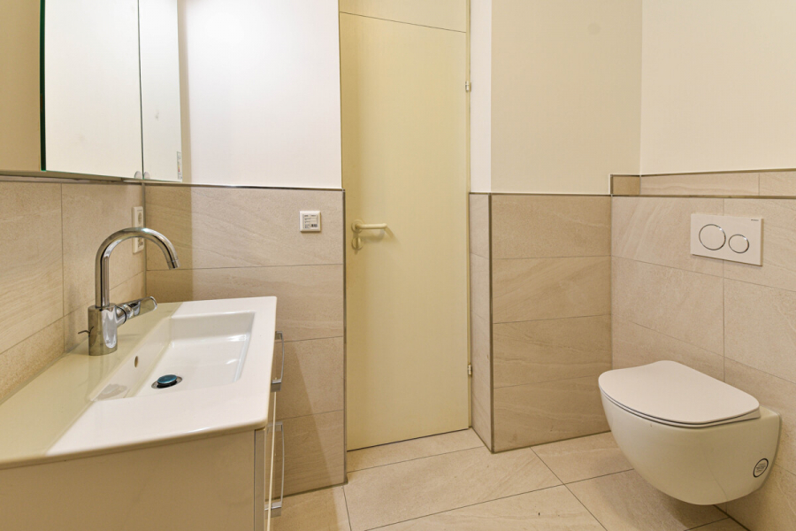 Das neu errichtete Badezimmer überzeugt mit einer zeitgemäßen, hochwertigen Ausstattung und verfügt über eine großzügige Dusche. Ein separater Abstellraum mit Waschmaschinenanschluss sorgt für zusätzlichen Komfort und praktische Ordnung im Alltag. Eine Einbauküche kann auf Wunsch vom Vormieter übernommen werden und fügt sich harmonisch in das moderne Wohnkonzept ein.