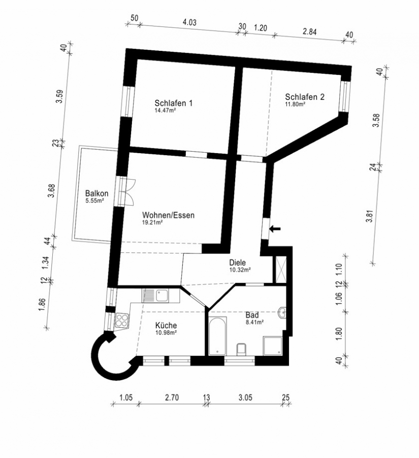 • 3-Zimmer-Wohnung, ca. 76 m² Wohnfläche